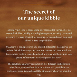 Our kibble is baked in warm air ovens creating a unique biscuit unsurpassed in flavour and goodness. Perfect for dogs with digestive issues, allergies and fussy eaters.