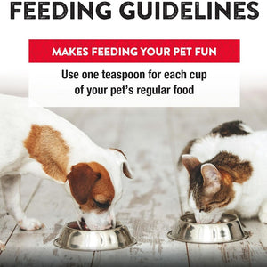 • Sprinkle or spoon it over your pet‘s kibble or raw diet to add extra flavor that dogs and cats love.