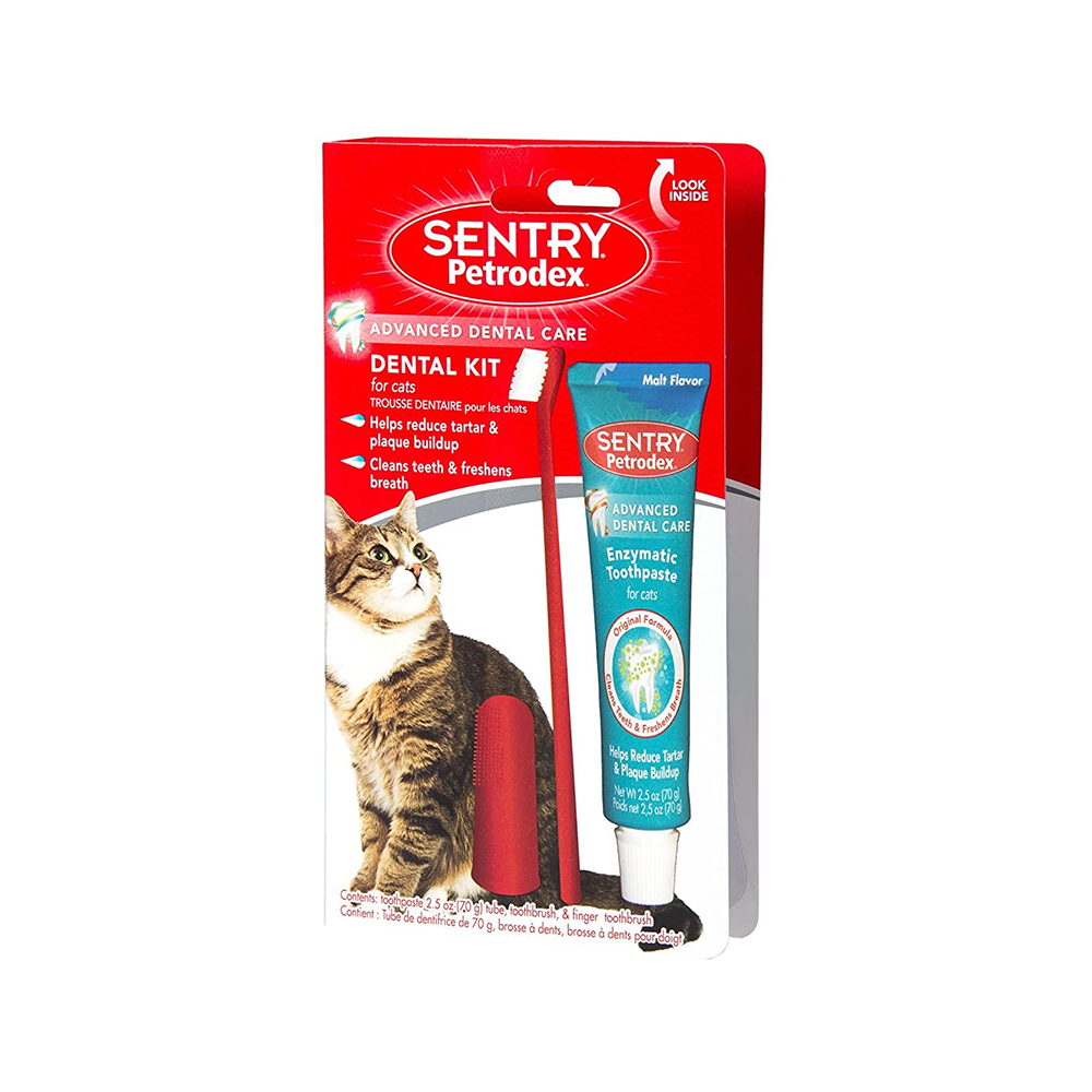 Introducing your cat to teeth brushing as early as possible can help them get used to humans handling their mouth. Start slowly and keep each experience positive. It helps that pet toothpaste comes in delicious flavours, so your cat will love to lick the toothpaste off by themselves! Add a toothbrush or finger brush to further help break down plaque and tartar, and keep their mouth smelling clean and fresh.