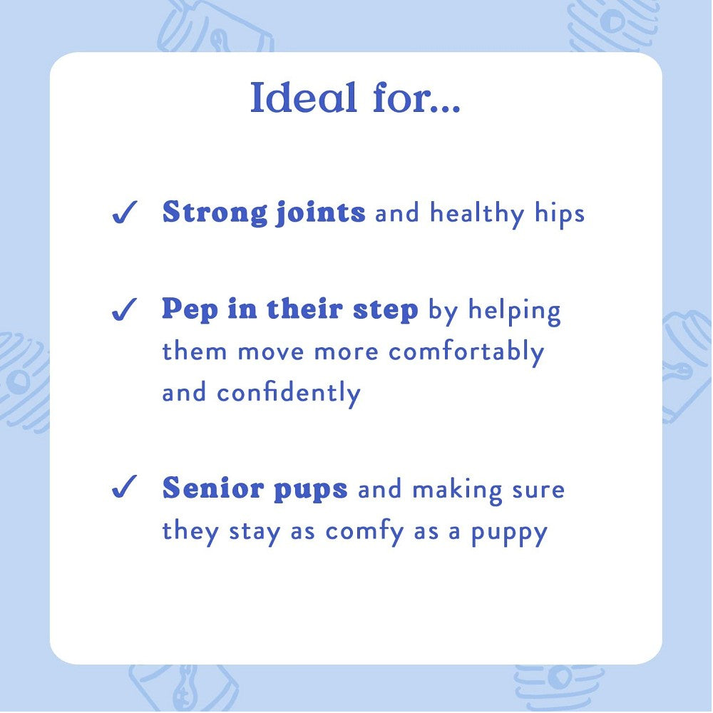 At Whisker N Paws, we recognize the paramount importance of hip and joint support for your canine companion's overall health and well-being. That's why we offer a carefully selected array of dog treats for joint pain and hip and joint support products, designed to help your furry friend maintain an active and pain-free lifestyle. Dogs love to run and play, but all that activity can take a toll on their joints. That's why it's important to start thinking about joint health early on. Arthritis is one of the most common ailments in dogs, but it can be difficult to diagnose in the early stages because dogs are so good at hiding their pain.