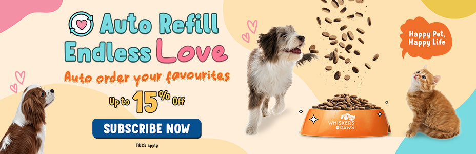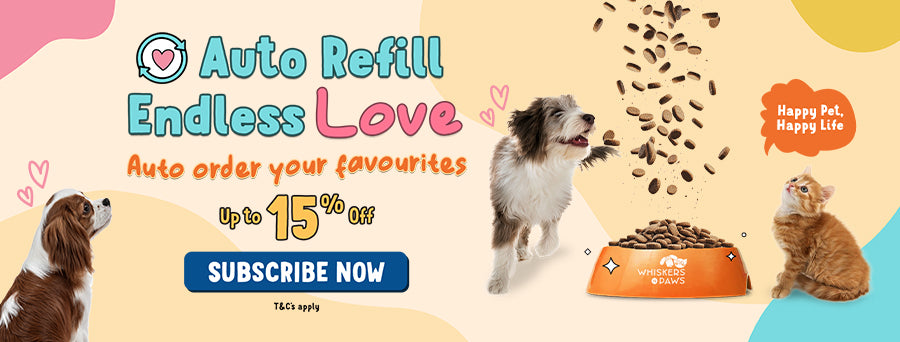 - The subscription offers are applicable to selected brands' products. - Stella & Chewy's subscription offer: Enjoy ONE free gifts on your first subscription order; a free gift on each subsequent order until the 12th. - Instinct and Monster Paws subscription offers: Enjoy 15% off on your first subscription order; and 5% off on the subsequent orders. - Enjoy 10% off on your first subscription order; then 3% off on the subsequent orders on these brands: ZiwiPeak/ Orijen/ Open Farm / Wellness/ Wellness Core/ Honest Kitchen/ Fromm/ Fish4Dogs/ Fish4Cats/ Canidae/ Taki/ Now Fresh/ Lily's Kitchen/ Canagan/ RAWZ/ Earth Rated/ Earth Bath/ PetKin/ Primal/ Northwest Natural - These offers are available online. - Discounted items are non-refundable and non-returnable. - While stock lasts. Offer may end without prior notice. - This offer is non-transferable and non-exchangeable for cash. - This offer cannot be combined with other promotions, is non-transferable and non-exchangeable for cash. - In case of any disputes, Whiskers N Paws has the final decision. Whiskers N Paws reserves the right to modify these terms and conditions at any time.
