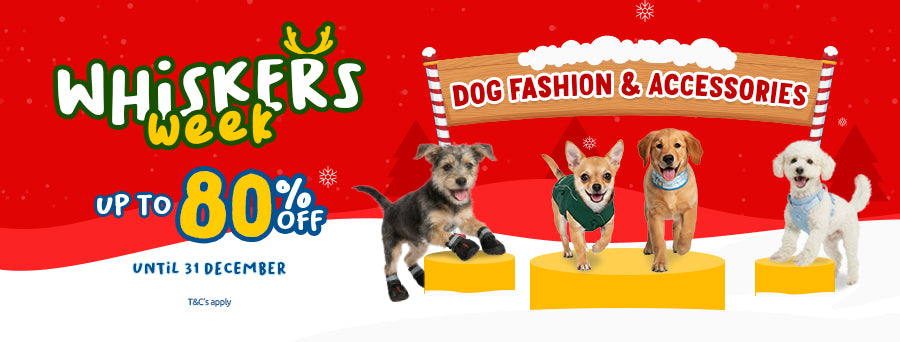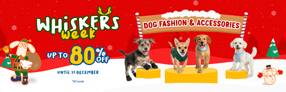 - Promotion valid from 8 to 31 December 2025. - This is an online exclusive offer and is valid only on wnp.com.hk. - Up to 80% OFF applies to selected dog fashion and accessories only. - Discounted products are non-refundable and non-exchangeable. - This offer cannot be combined with other promotions. It is non-transferable and cannot be exchanged for cash. - If any order placed using this offer is cancelled or refunded, the offer will be considered redeemed and will not be compensated. - All products are subject to stock availability. - In case of any disputes, Whiskers N Paws reserves the right of final decision and the right to modify these terms and conditions at any time.