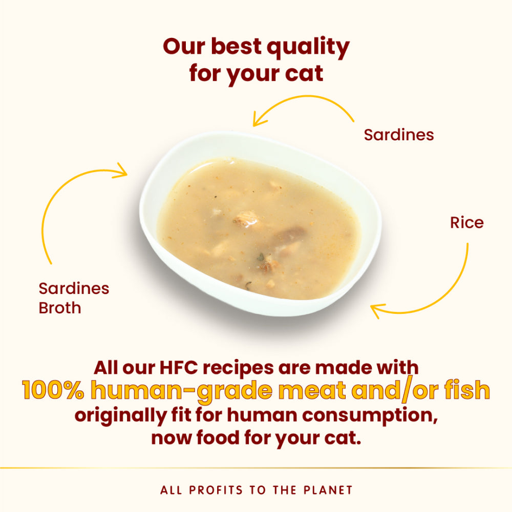 Almo Nature HFC Hydration Help Sardines Broth with Sardines Cat Food is a premium complimentary wet food developed to support daily hydration while providing gentle and natural nutrition. Made with ingredients originally fit for human consumption, this recipe focuses on purity, digestibility, and high moisture content.