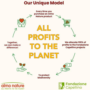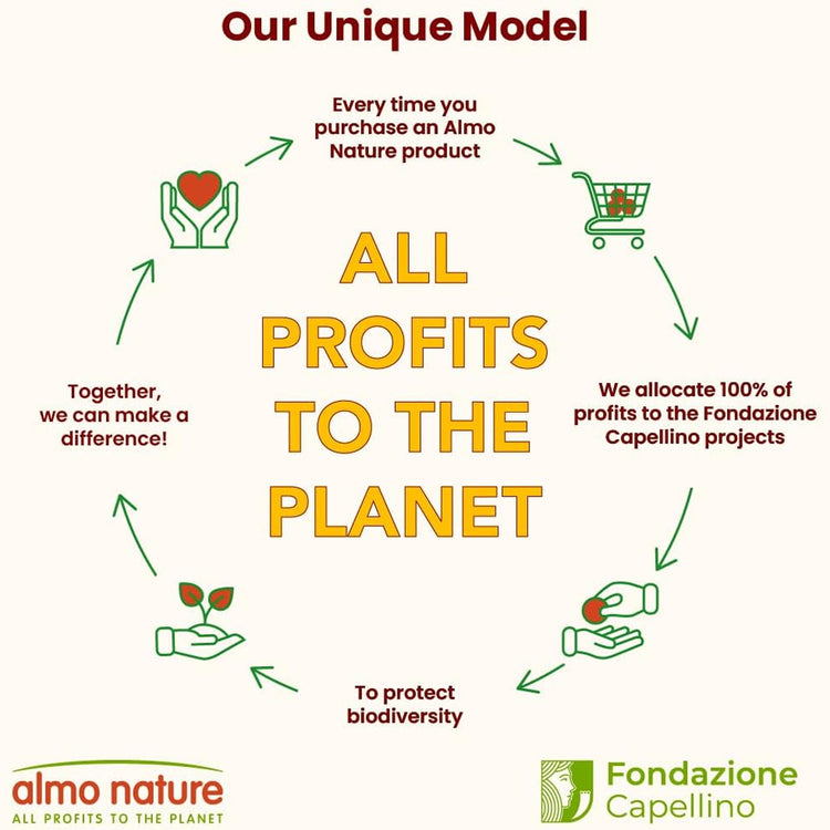 Buy Almo Nature for a good cause In 2018, owners Lorenzo and Pier Giovanni Capellino donated Almo Nature to Fondazione Capellino, a foundation that protects cats, dogs and nature through various projects. Now, all of Almo Nature's profits are used to fund the foundation's projects—which means that you directly support these projects whenever you buy Almo Nature products!