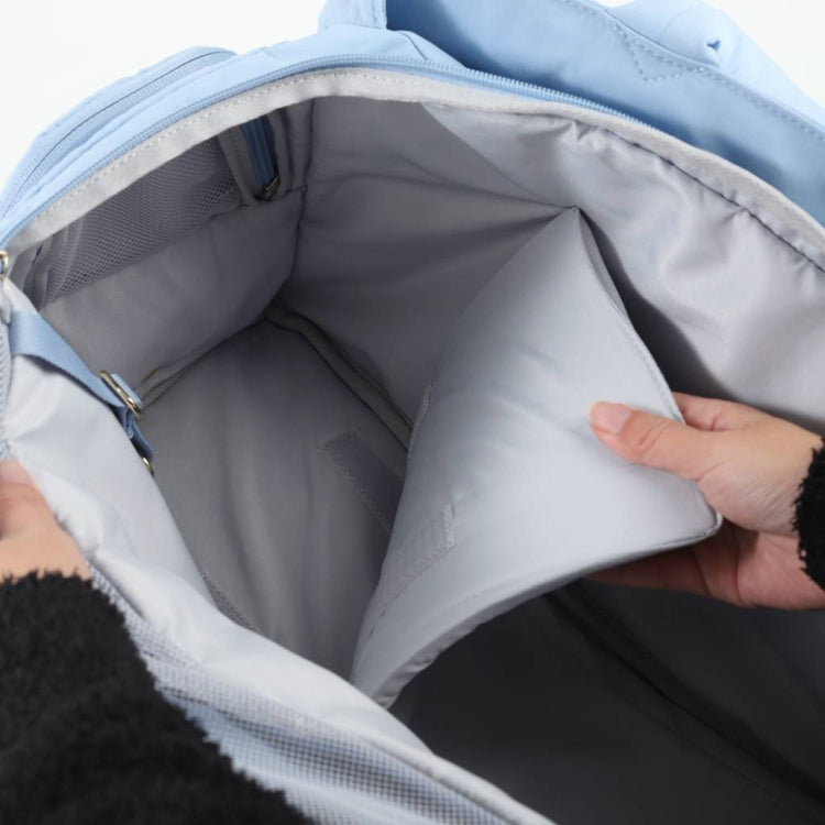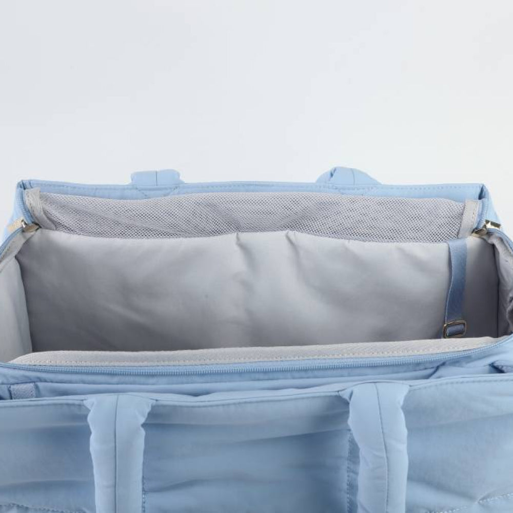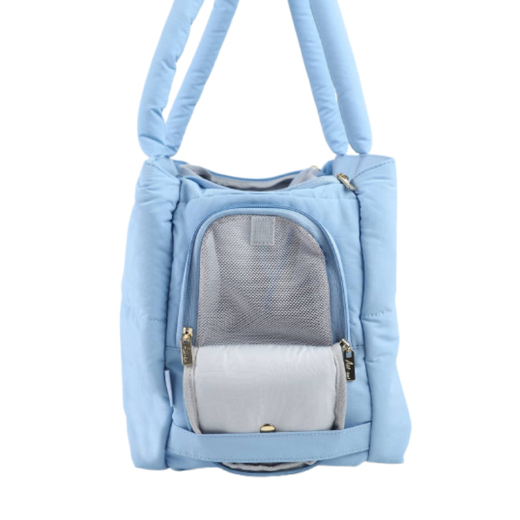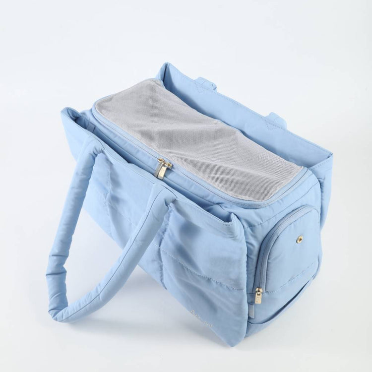 - Cloud inspired styling, quilted details, fluffy handles, and waterproof fabric make this carrier both fashionable and functional for commutes and vacations.
