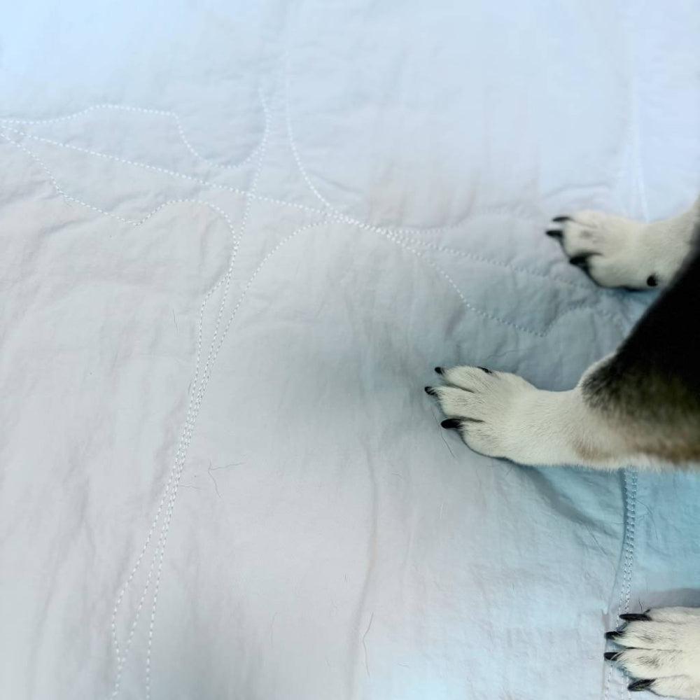 Made with a waterproof recycled nylon surface, the mat is easy to clean and maintain. The bottom features anti-slip paw prints to prevent sliding from chairs or car seats, ensuring stability and safety during use.