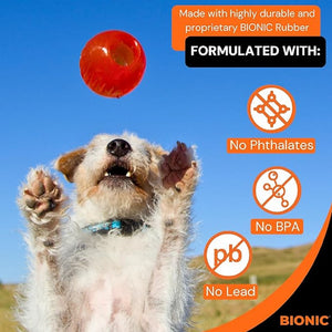 Founded in 2006, BiONiC prides itself in developing and providing virtually indestructible dog toys. Especially made for dogs who destroy other toys in minutes, BiONiC's dog toys are made from Bionic Rubber®, a \"Supernatural Strong\" material that even aggressive chewers can't destroy. Its dog toys are designed with different cool features, such as food dispensing and floating properties. They are also dishwasher-safe, meaning they are not only super fun for the pups, but also convenient for you.