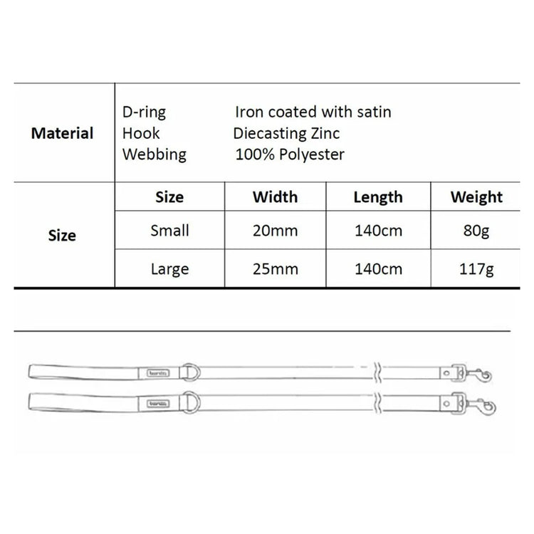 由100% 聚酯纖維織帶製成,狗繩輕巧柔軟,減少對手部嘅刺激,同時保持極高強度。經測試可承受5,200 公斤拉力,即使係大型或力氣大嘅狗狗都同樣可靠。