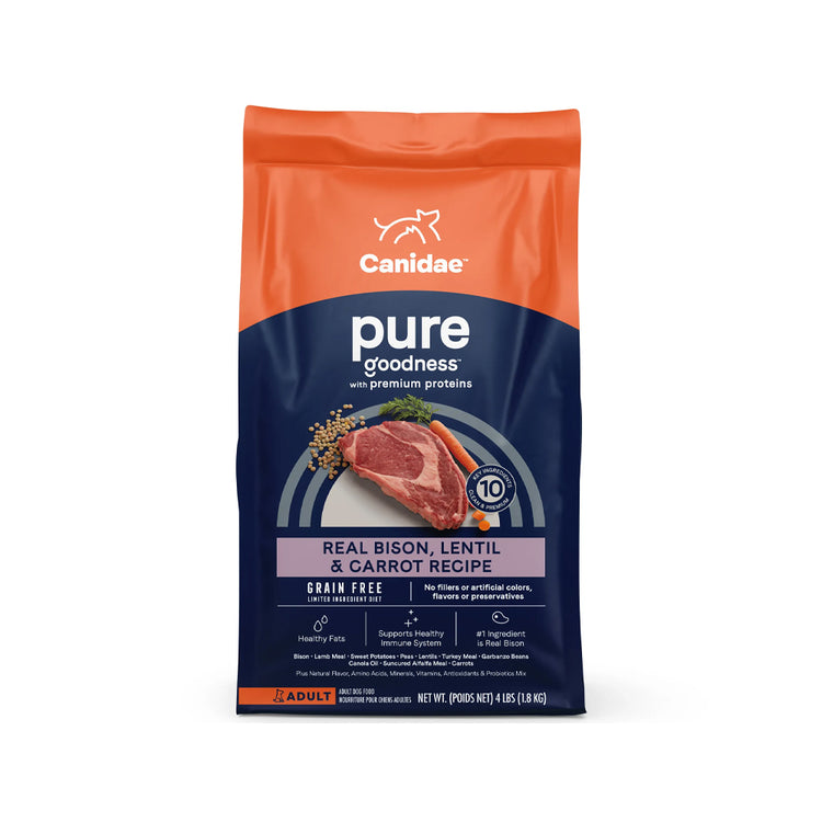 • CANIDAE® PURE™ Real Bison, Lentil & Carrot Recipe is formulated to meet the nutritional levels established by the AAFCO Dog Food Nutrient Profiles for maintenance