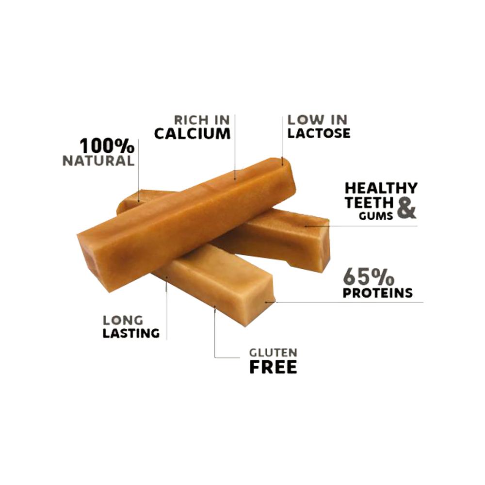 Churpi products are handmade in Himalaya using creamy yak milk. Since yaks feed on pollution-free grass and drink water of maximum purity, Churpi's chewable snacks are 100% natural and easy to digest. An ideal hypoallergenic and immunostimulant food supplement, Churpi's products provide your dog with numerous nutrients such as calcium, potassium, zinc, folic acid and more, making them beneficial for the teeth and gums, as well as the lymphatic system and gastrointestinal mucosa.