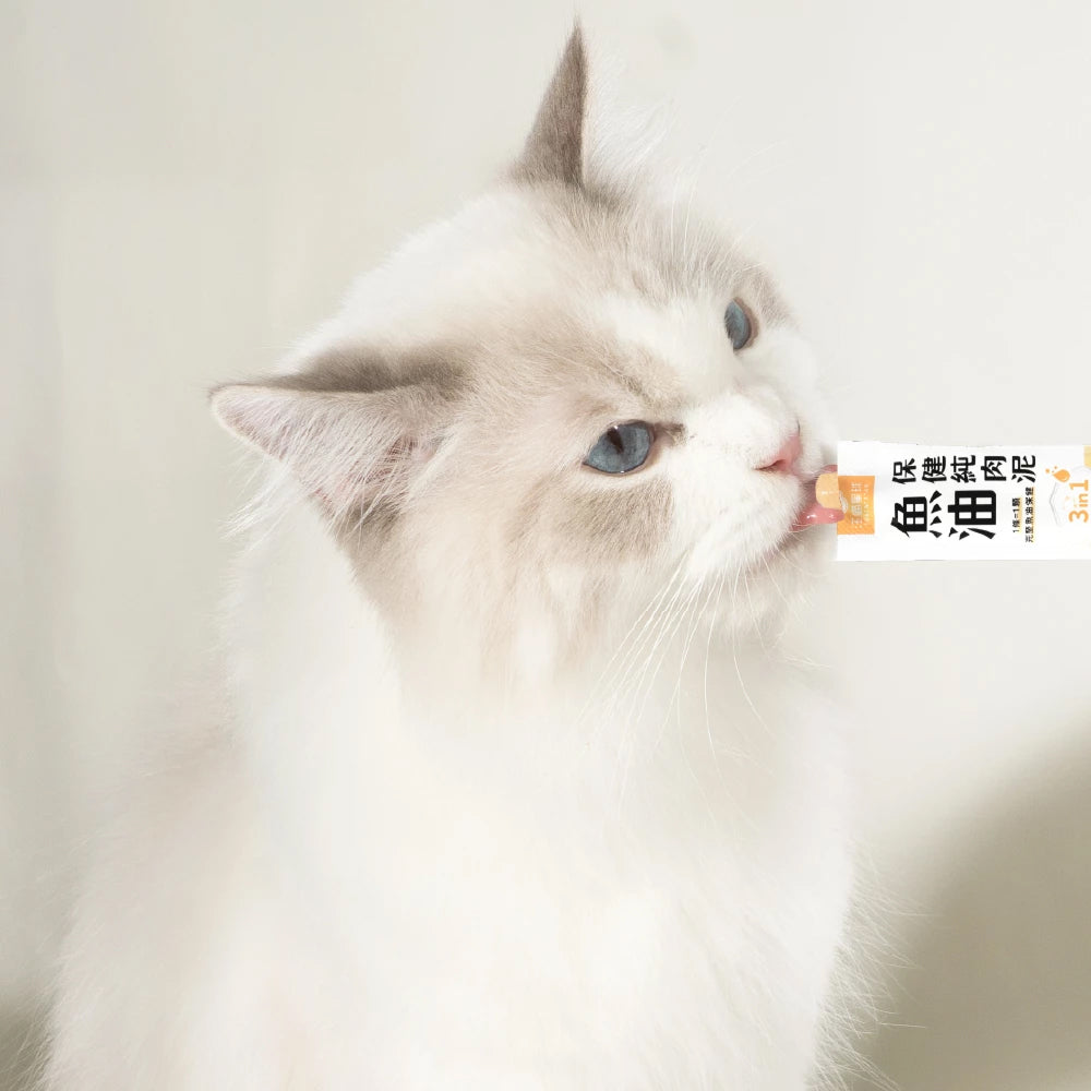 每根棒狀產品融合了 西班牙 Solutex 魚油,富含 Omega-3(DHA & EPA),有助於保持毛髮光澤和皮膚健康,並加入 日本大正製藥牛磺酸,支援心臟、大腦和眼睛健康。卵磷脂進一步增強吸收,而天然雞精則提供即使是挑食的寵物也無法抗拒的美味。
