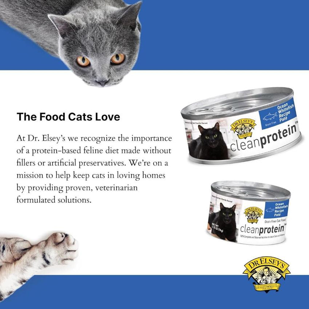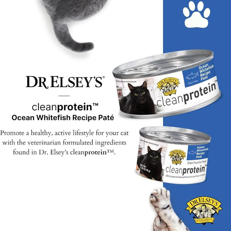 Support your cat’s daily wellness with Dr Elsey’s cleanprotein™ Grain-Free White Fish Recipe Canned Paté, a veterinarian-formulated wet food designed for cats of all life stages. This smooth, moisture-rich paté provides balanced daily nutrition while helping support hydration, making it a great option for kittens, adult cats, and senior cats alike.