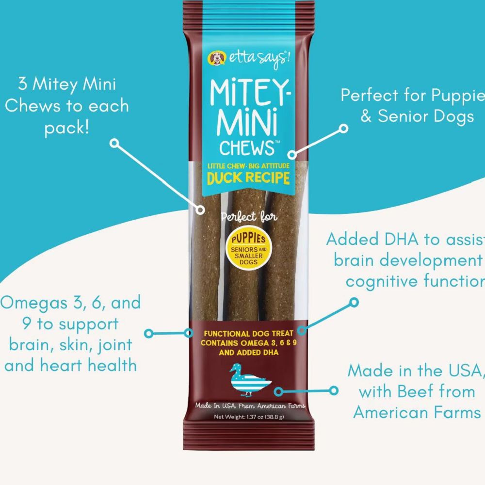 • These mini-chews are a tasty, chewy treat for your puppy or adult pooch.