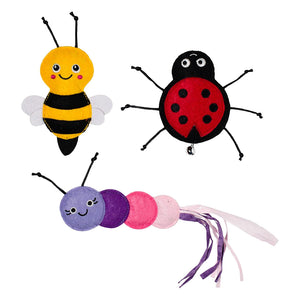 - Set Includes: Bee, ladybug, and caterpillar plush toys in varying sizes