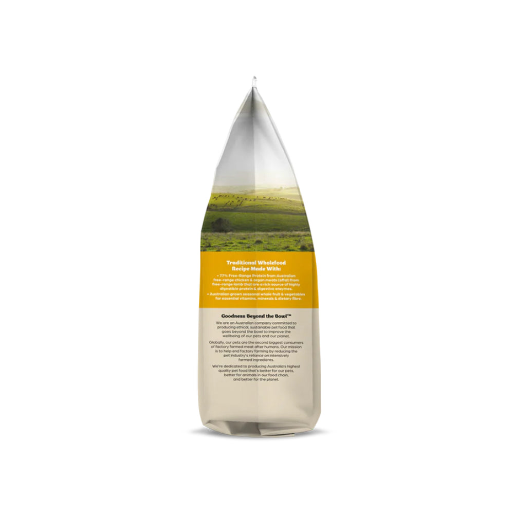 Freeze Dried Free Range Chicken Dog Food 採用澳洲自由放養雞肉及有機蔬果製成,100% 人用級食材,來自可持續農場。這款優質配方提供天然均衡的營養,以冷凍乾燥技術保留養分與風味。