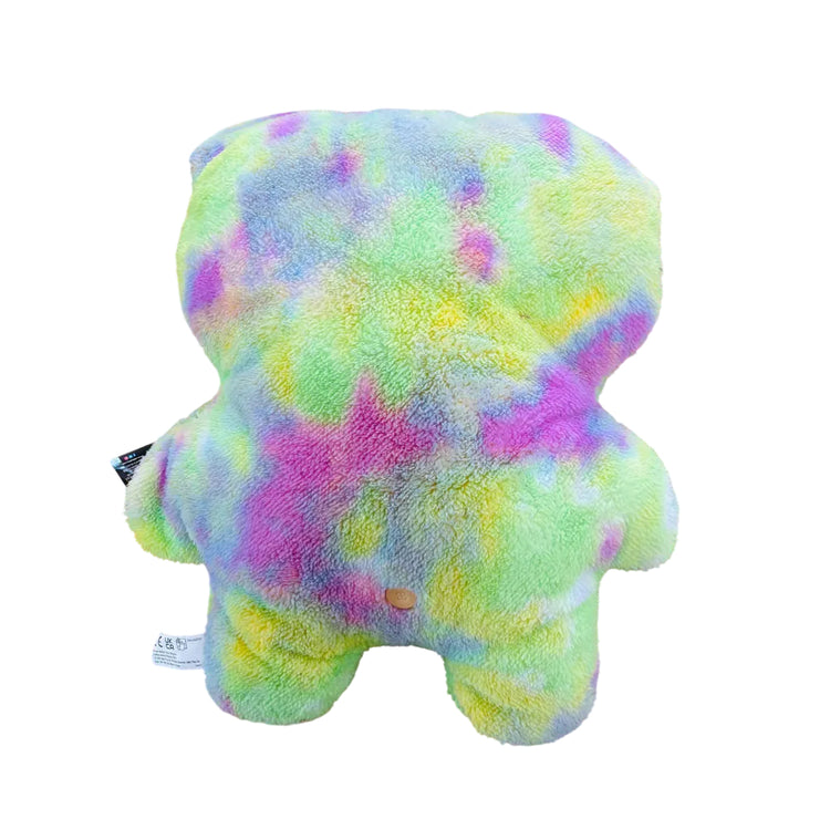- Fur Texture: Soft, fuzzy plush with multi-coloured tie-dye finish