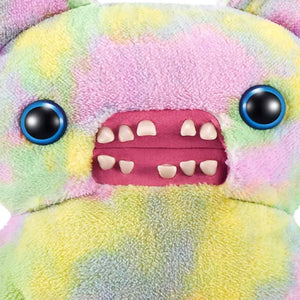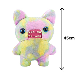 Wrapped in multi-coloured tie-dye fuzzy fur, this XL Fuggler demands attention before it even makes a sound. Its character is built around sheer auditory mayhem, imagined as a window-shattering squeal that echoes through the streets wherever it goes. The exaggerated personality details, including trombone-level fart velocity and bubbly phlegm consistency, push the absurd humor Fugglers are known for even further.
