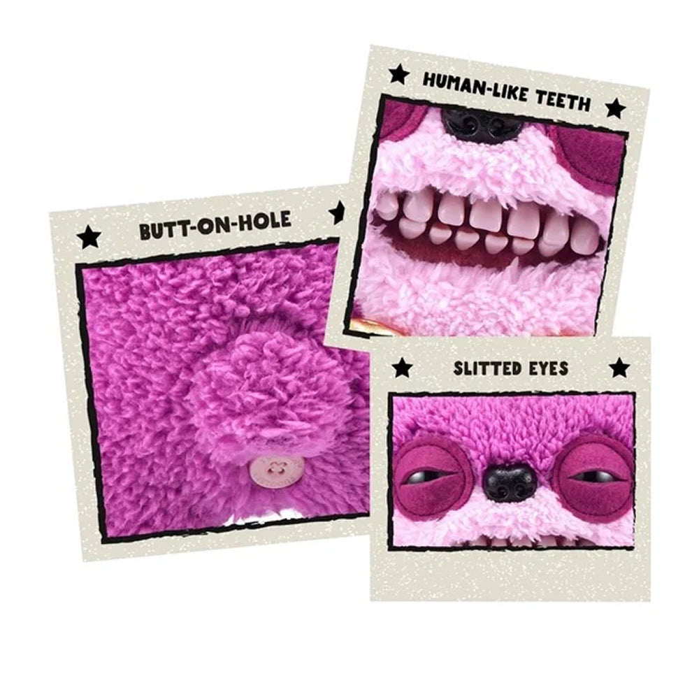 Designed to bring laughter and light-hearted horror to playtime, this uniquely quirky plush toy features Fuggler’s signature realistic human-like teeth and a mischievous expression that’s impossible to ignore. Its soft, fuzzy exterior makes it perfect for cuddles, while its cheeky “silent whistle” squeak adds an unexpected twist to interactive play.