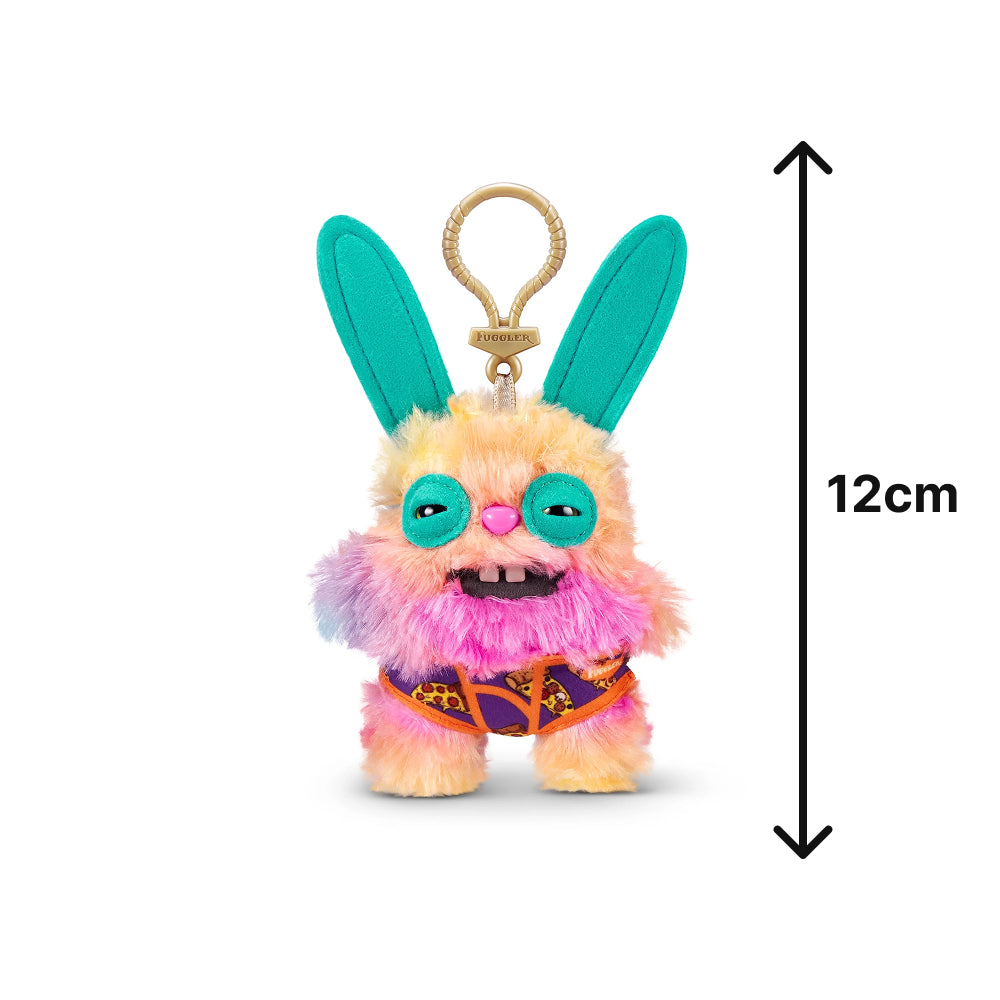 多色旋渦毛絨外層令這隻小兔怪更加搶眼,角色設定永遠在尋找芝士與香腸薄餅,無論走到哪裡都像隨時準備搶走你的外賣。鎖匙扣設計可扣在鎖匙或袋上,方便隨身攜帶,亦確保混亂一路跟隨。