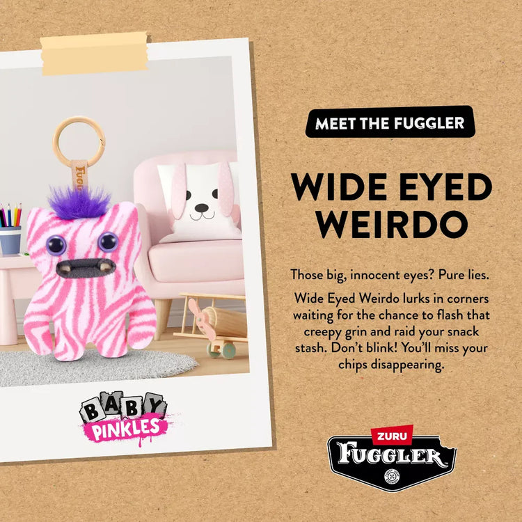 Meet the Fuggler Baby Pinkles 3.5 inch (8cm) plush toy by ZURU. Proof that mischief comes in miniature packages. The Wide Eyed Weirdo may be tiny, but this funny ugly monster is overflowing with chaotic personality.