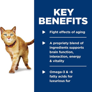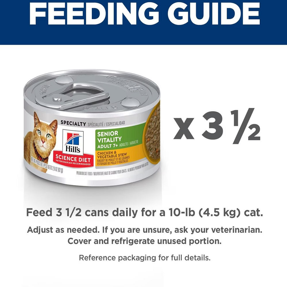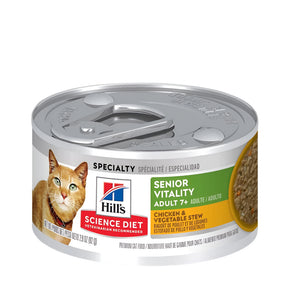 Hill's Science Diet Adult 7+ Senior Vitality Chicken & Vegetable Stew cat food provides precisely balanced nutrition to fight effects of aging in your Adult 7+ cat.