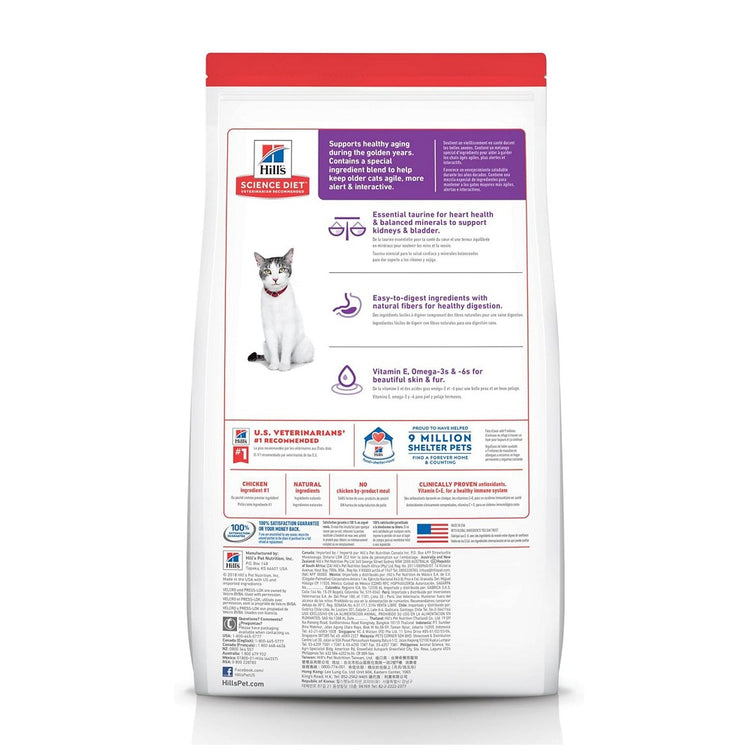 • Made in the USA, this is a complete and balanced diet recommended for adult cats 11 years of age and older.