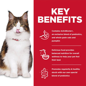 This advanced recipe features ActivBiome+ Technology, an exclusive blend of prebiotics including whole grain oats and pumpkin that actively nourish beneficial gut bacteria. The result is improved nutrient absorption, consistent digestion, and healthier stool quality, helping your cat feel comfortable every day.