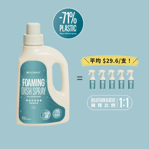 The specially formulated concentrate can be refilled 5 times, producing 2 liters of Foaming Dish Spray, very convenient. Average cost per spray bottle is only $29.6!