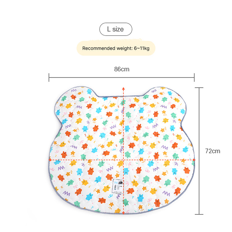 墊面採用柔軟人造絲布料製成,接觸時可即時吸收體溫,帶嚟溫和嘅降溫感覺,無需用電或冷藏。可愛嘅啫喱熊圖案為你嘅家居增添俏皮同時尚氣息,實用與美觀兼備,適合擺放喺任何寵物休息角落。