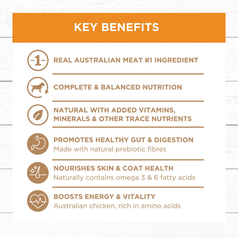 - Real Australian Chicken as #1 ingredient for high-quality protein
