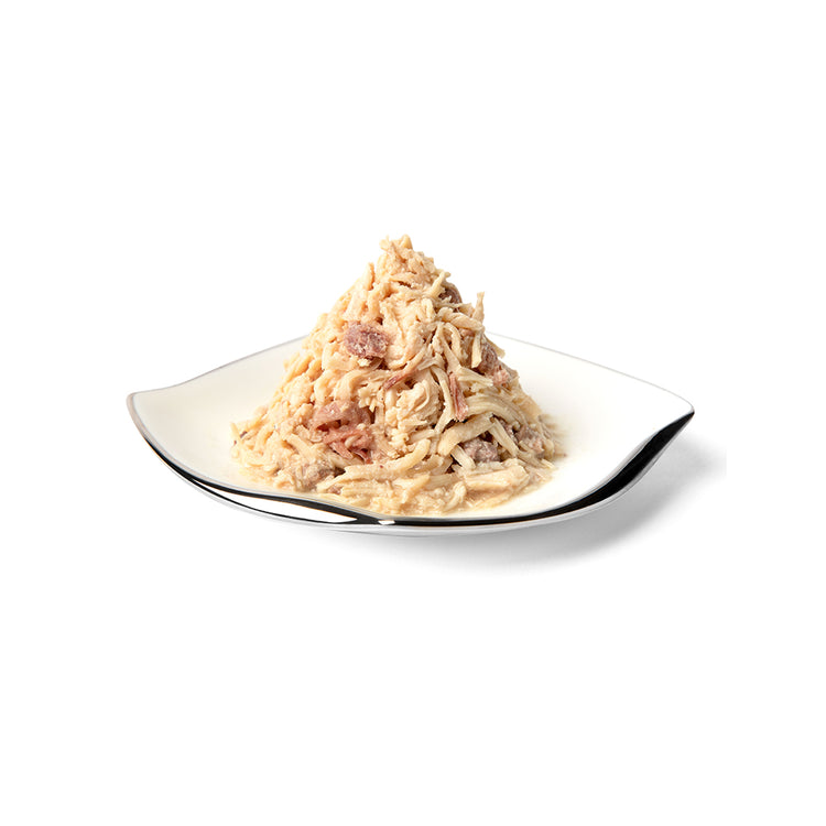 Chicken breast, Chicken broth, Beef heart, Beef liver, Chicken heart, Chicken gizzard, Beef, Chicken liver, Beef lung, Tricalcium phosphate, Sunflower seed oil, Tuna oil, Taurine, FOS, Yucca extract, Choline chloride, Zinc sulphate, Magnesium sulphate, Vitamin E, Vitamin B3, Ferrous sulphate, Calcium pantothenate, Manganese sulphate, Vitamin A, Vitamin B1, Vitamin B6, Vitamin B2, Copper sulphate, Folic acid, Potassium iodide, Biotin, Vitamin B12, Vitamin K