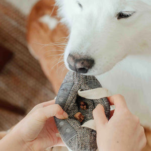Simply remove the ribbon, place the treats inside, reinsert the ribbon, and let your dog sniff, paw, and nuzzle their way to a tasty reward. The interactive ribbon and squeaky insert offer added layers of play, making this a toy that stimulates both body and mind.