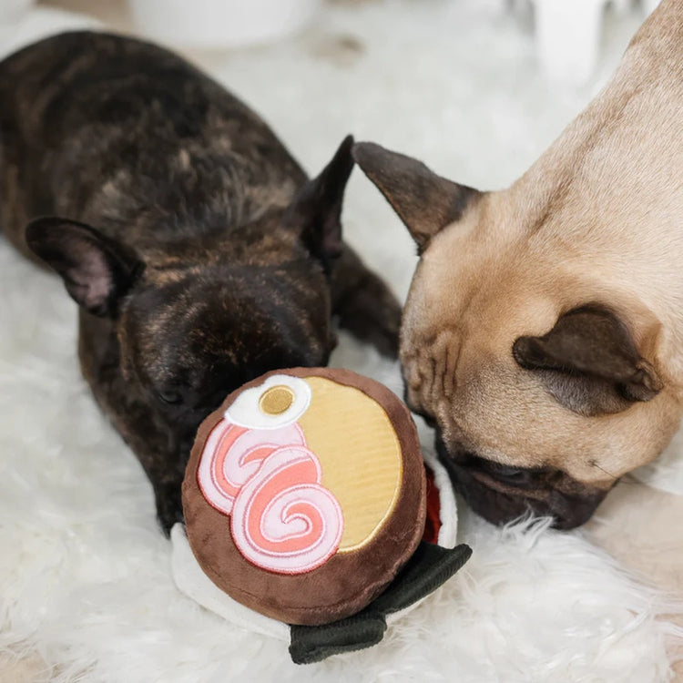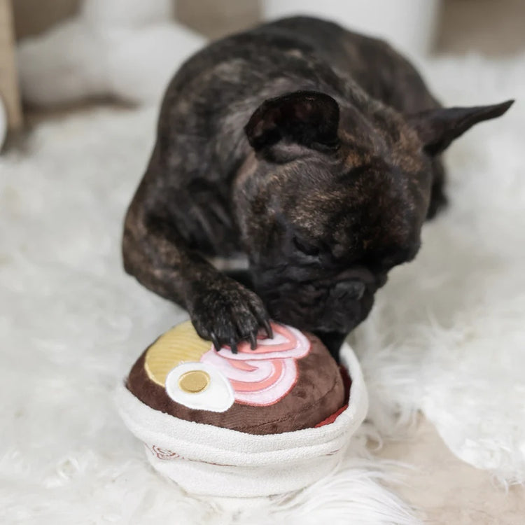 A playful, snuffle-style toy designed to look like a bowl of ramen—perfect for food-motivated pups who love to sniff, squeak, and snack their way to happiness.