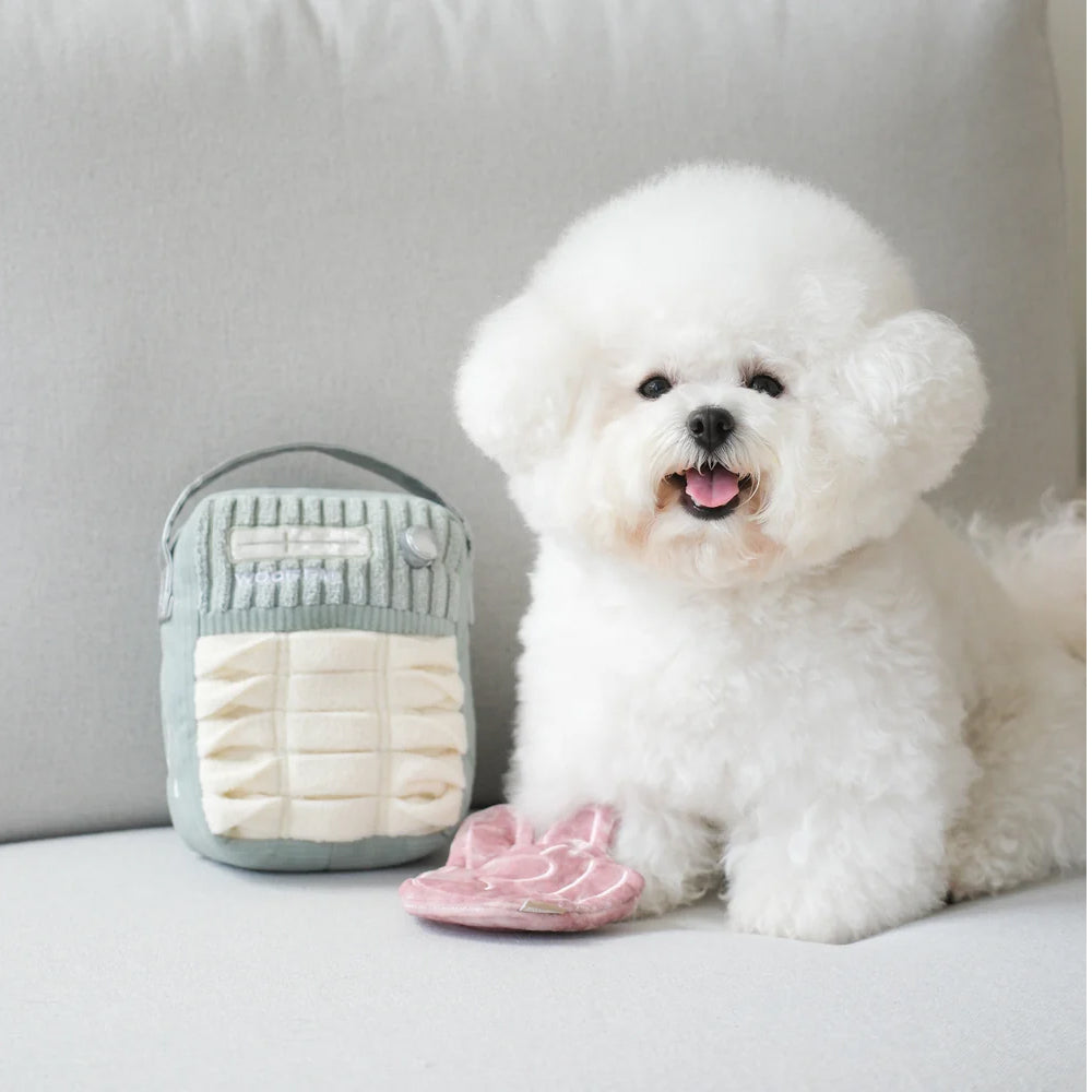 讓狗狗收聽「快樂頻道」!Lambwolf Woof FM 嗅聞與發聲狗玩具以懷舊收音機造型設計,結合嗅聞墊與發聲玩具,讓狗狗在專注與探索中獲得樂趣。