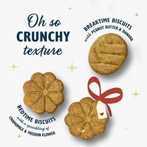 - Includes Breaktime Biscuits with peanut butter & banana and Bedtime Biscuits with chamomile & passion flower.