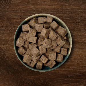 The mixture is frozen to lock in goodness before 98% of the moisture is removed. A clever process that leaves behind light compact food can that be fed alone or rehydrated to create a paste. This innovative diet has the benefits of raw food without having to be stored in the freezer. Just 1.5kg contains an incredible 5.25kg of wholesome ingredients.