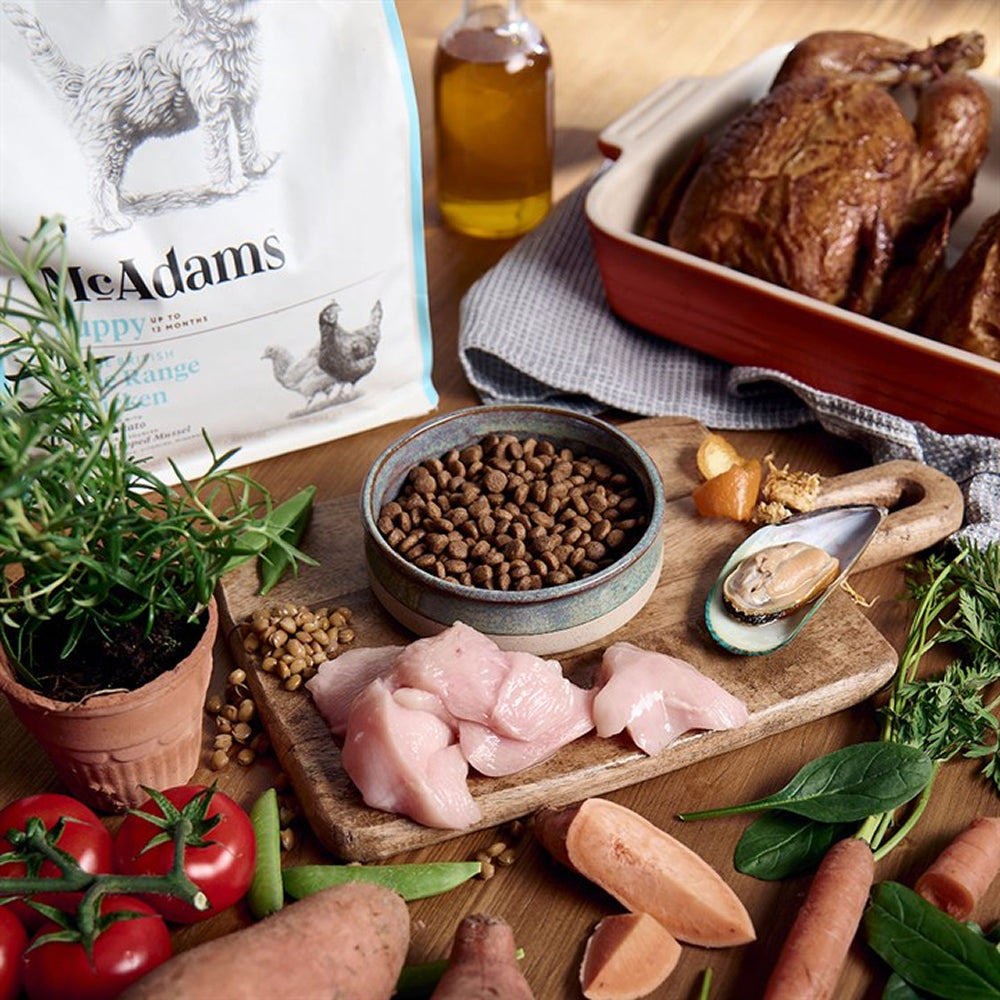McAdams Puppy Chicken Dog Dry Food is specially formulated to support the healthy growth and development of puppies of all breeds. This complete and balanced diet is made using only whole British free-range chicken, providing high-quality protein without the use of meat meals.