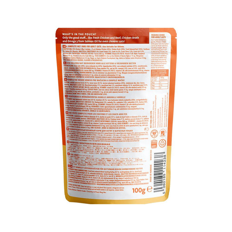 Ingredients: 93% Chicken & Beef includes – Fresh Deboned Chicken (43%), Chicken Broth (25%), Fresh Deboned Beef (25%), Sunflower Oil, Salmon Oil, Minerals