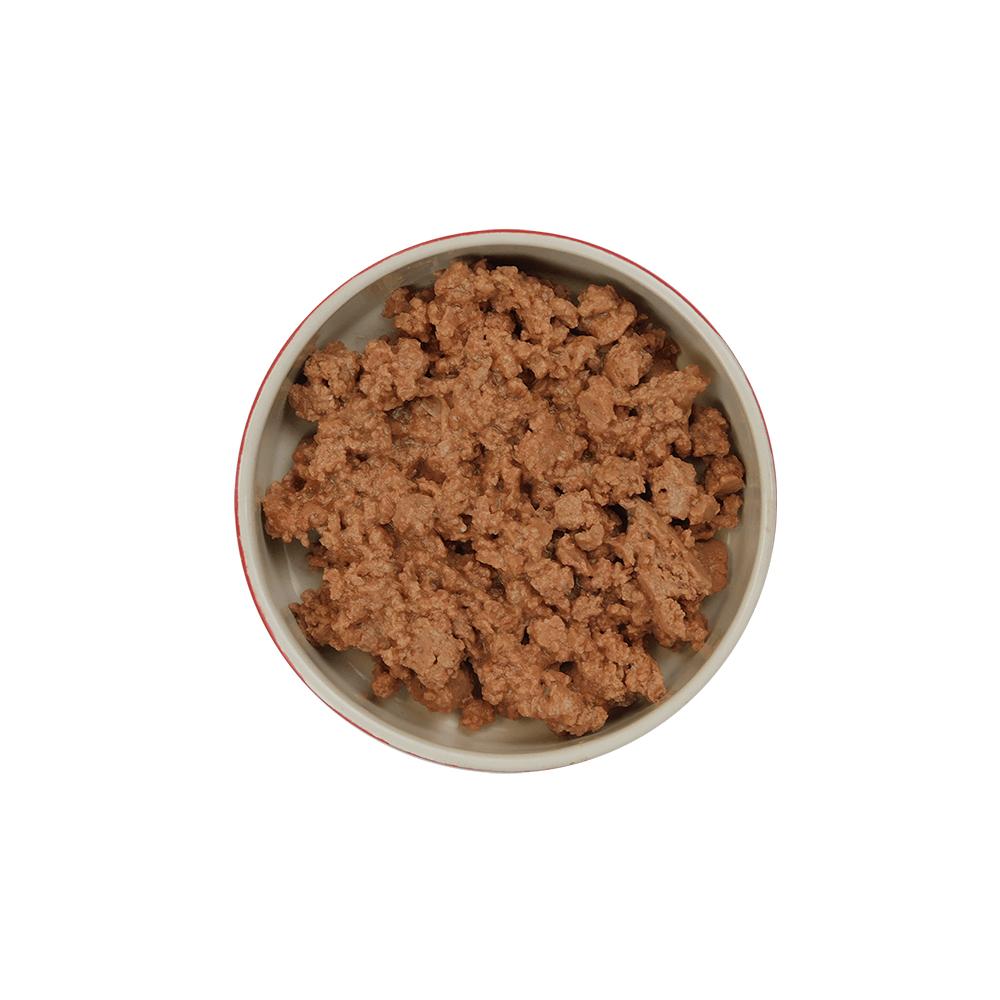 成分: 93% 雞肉和牛肉包括- 新鮮去骨雞肉(43%)、雞湯(25%)、新鮮去骨牛肉(25%)、葵花籽油、鮭魚油、礦物質