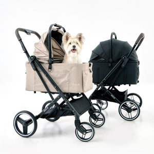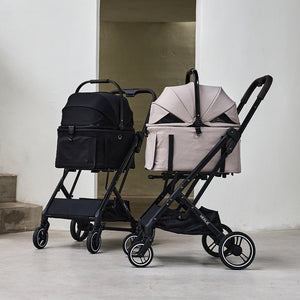 考慮到寵物與主人的實際需求,手推車配有兩條安全繩扣、飲品架與大容量下層置物空間。多重開篷設計可根據寵物需求調整通風或遮蔽。Peach 全車採用防水防污布料,耐用且容易清潔,是日常出行的理想選擇。