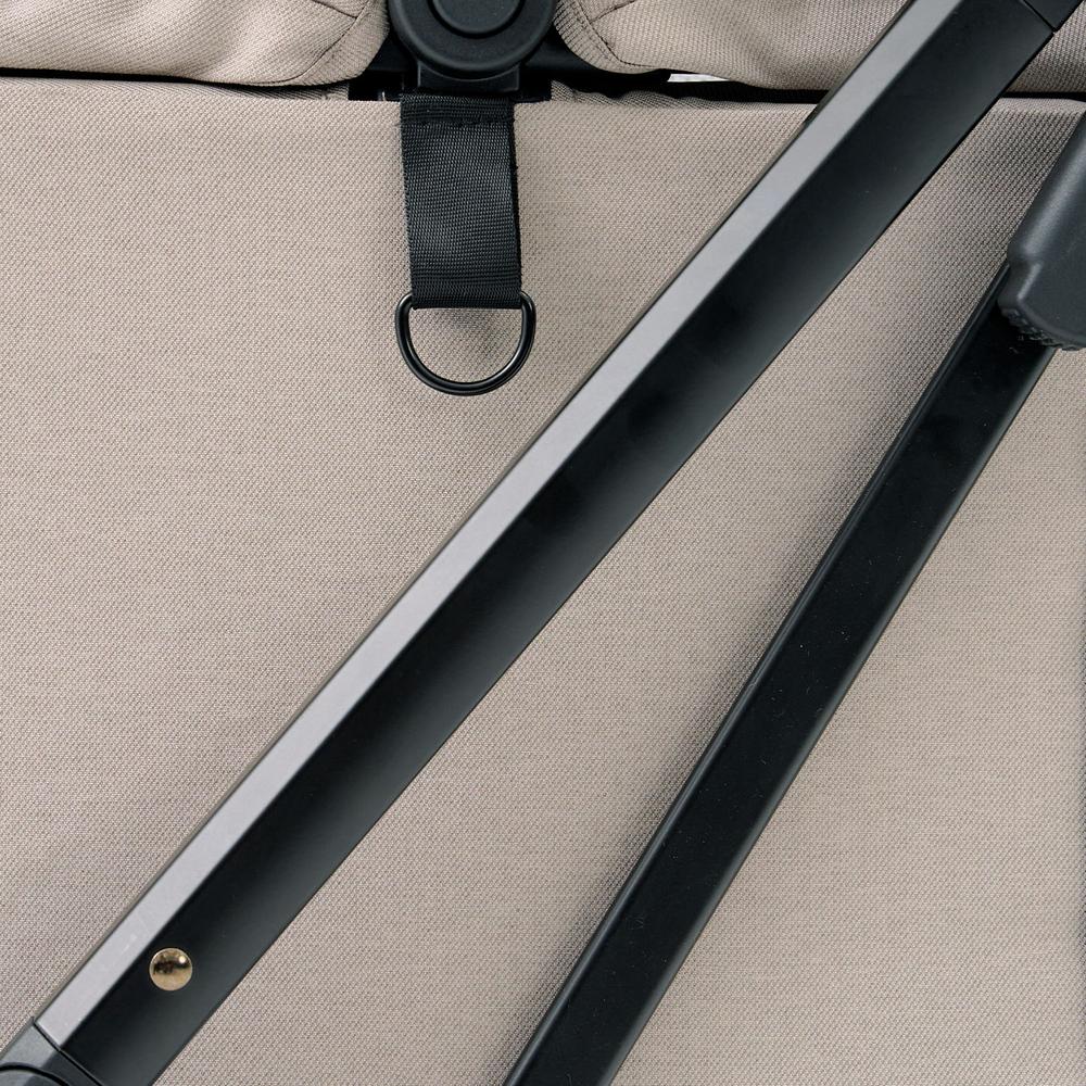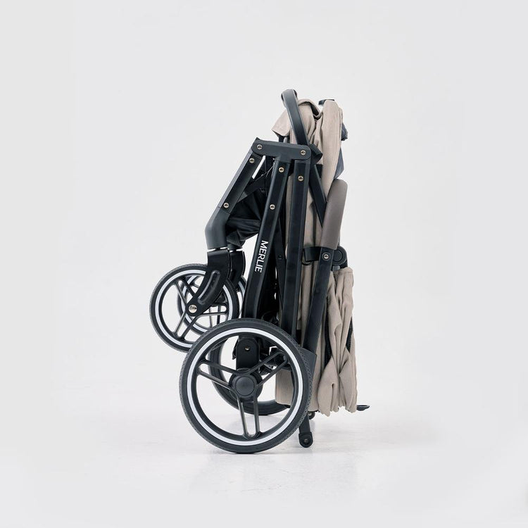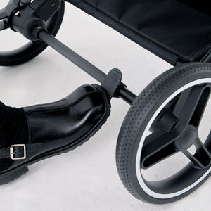 The Peach stroller features a fully collapsible design that’s compact, convenient, and travel-friendly. With its one-hand fold mechanism and wheeled transport handle, you can fold and store the stroller in seconds. The double-button folding system ensures no accidental collapses.