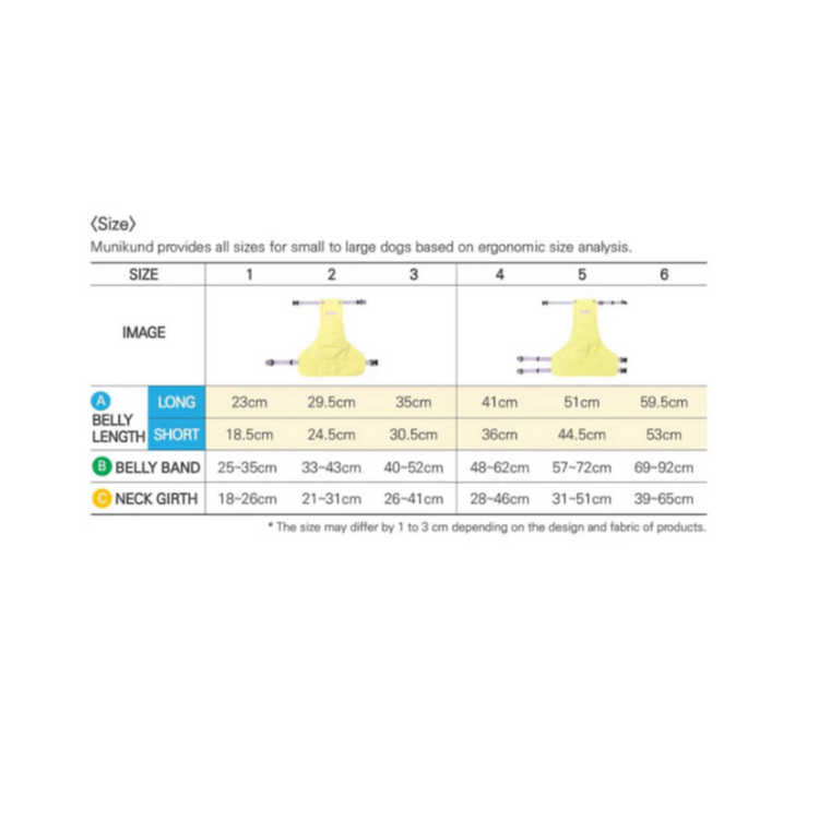 Made from FINETEX FABRIC Munikund Water Block Front Cover wraps the dog's belly and protects them from rainwater rub and contamination. The material is highly water resistant and breathable which provides a pleasant wearing experience for dogs.