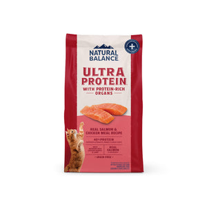 Natural Balance Ultra Protein Real Salmon & Chicken Meal Recipe is complete and balanced, and formulated to meet the nutritional levels established by the AAFCO Cat Food Nutrient Profiles for All Life Stages.