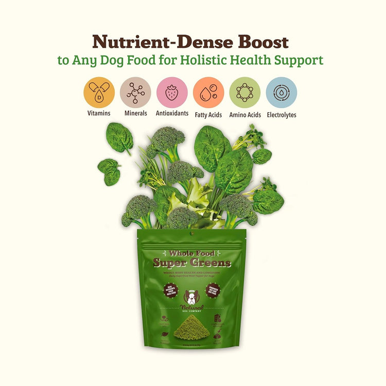 - NUTRIENT-RICH INGREDIENTS BLEND: Let your dog enjoy a meal they'll love with Super Greens. Our nutrient-dense multivitamin granules provide crucial support for digestion and energy. The savory vegetable flavor and moisture content make it irresistible, and our packaging is 100% recyclable, supporting sustainable choices for pet owners.