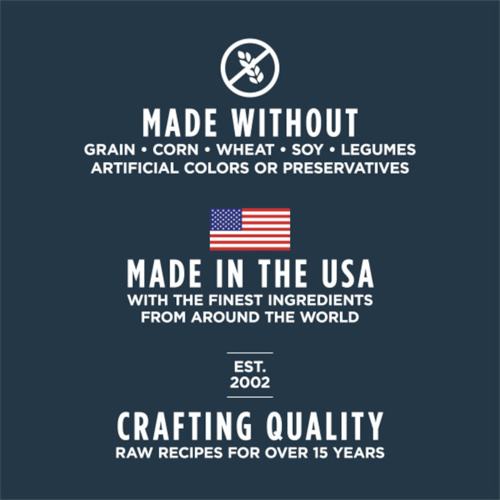 • Our raw recipes are freeze-dried for a less processed food than cooked kibble - which means better digestion and nutrient absorption.