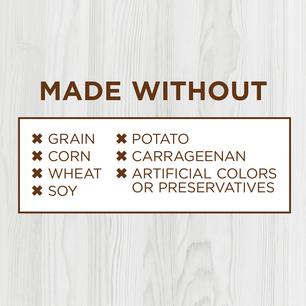 • Made without - grain, potato, corn, wheat, soy, by-product meal, artificial colors or preservatives