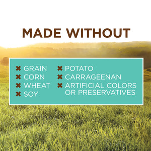 - • Made in the USA with the finest ingredients from around the world. Made without - grain, potato, corn, wheat, soy, by-product meal, artificial colors or preservatives
