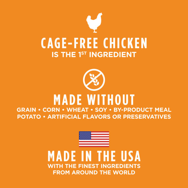• Made with cage-free chicken plus vibrant, functional whole-food ingredients likes pumpkin, sweet potato, chicory root, apple cider vinegar & probiotics