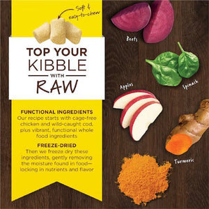 • Raw, whole-food ingredients are freeze-dried to gently remove the moisture, while locking in nutrients and flavor
