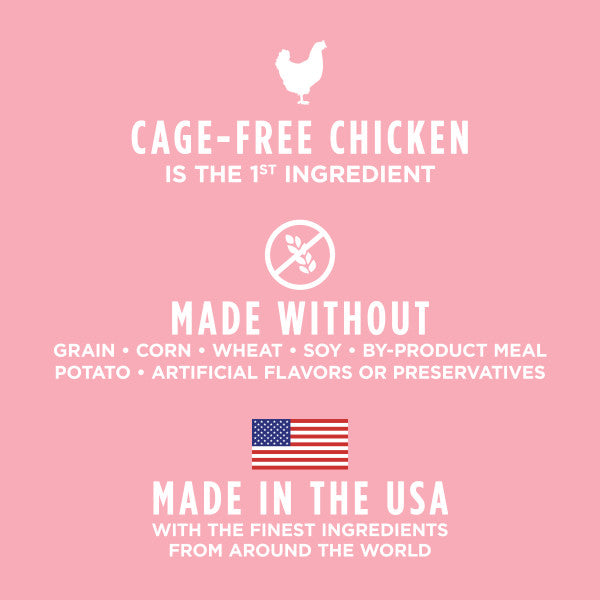 • Made with cage-free chicken plus vibrant, functional whole-food ingredients like wild-caught cod, salmon oil, chia seeds and cranberries